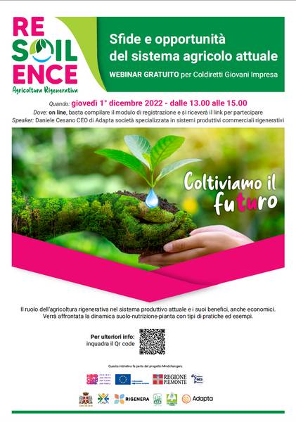 “ReSOILence” ha l’obiettivo di diffondere, nel Comune di Cirié, l’utilizzo dell’agricoltura rigenerativa come risposta ai cambiamenti climatici.